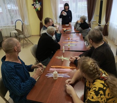 полустационарного отделения г. Киреевска  в рамках реализации проекта  «Активное  долголетие» специалистом по реабилитационной работе было проведено занятие по технике «Квилинг» -  «Цветочный ковёр» .