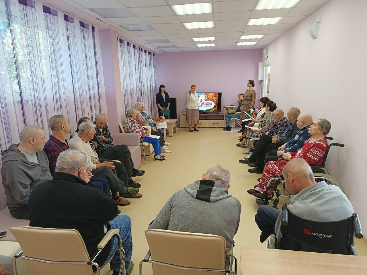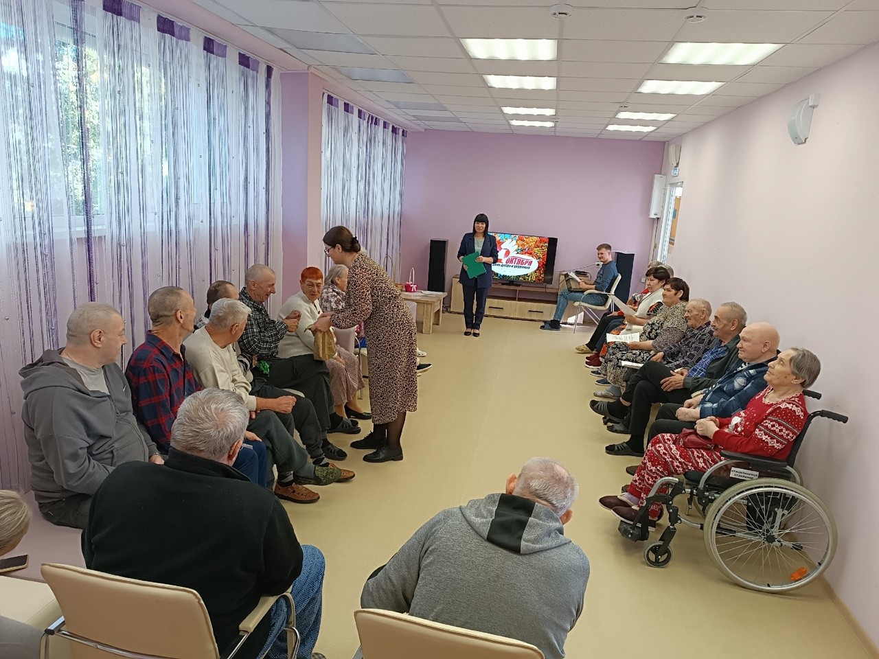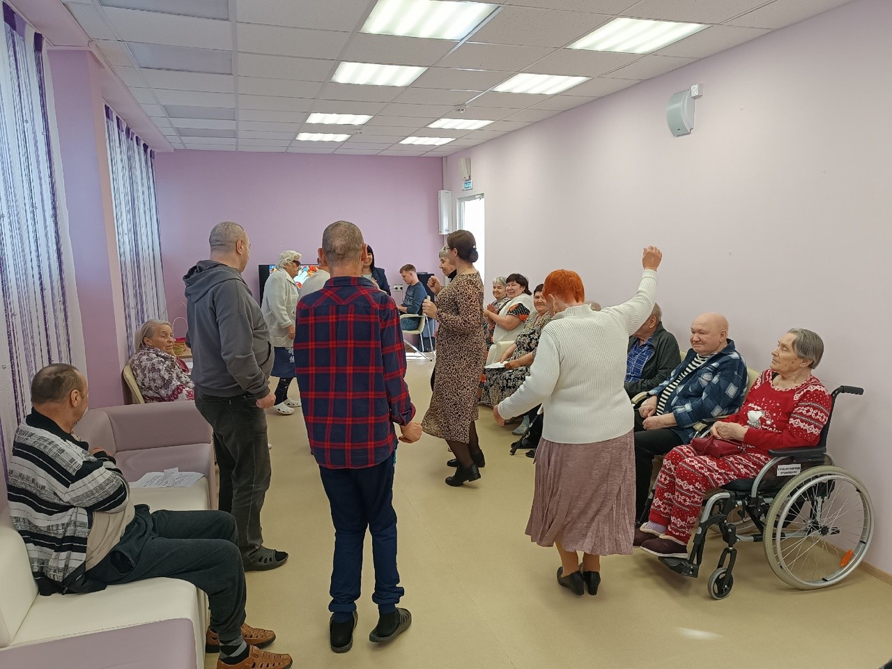 стационарного отделения (по типу «дом-интернат») и полустационарного отделения в рамках реализации проекта «Активное долголетие» прошел праздник, посвященный Дню пожилого человека. Он стал поистине ярким и трогательным событием, оставившим в сердцах всех присутствующих тепло и светлые воспоминания. Это был день, наполненный искренними эмоциями, где главной сценой стали улыбки наших дорогих пожилых людей.