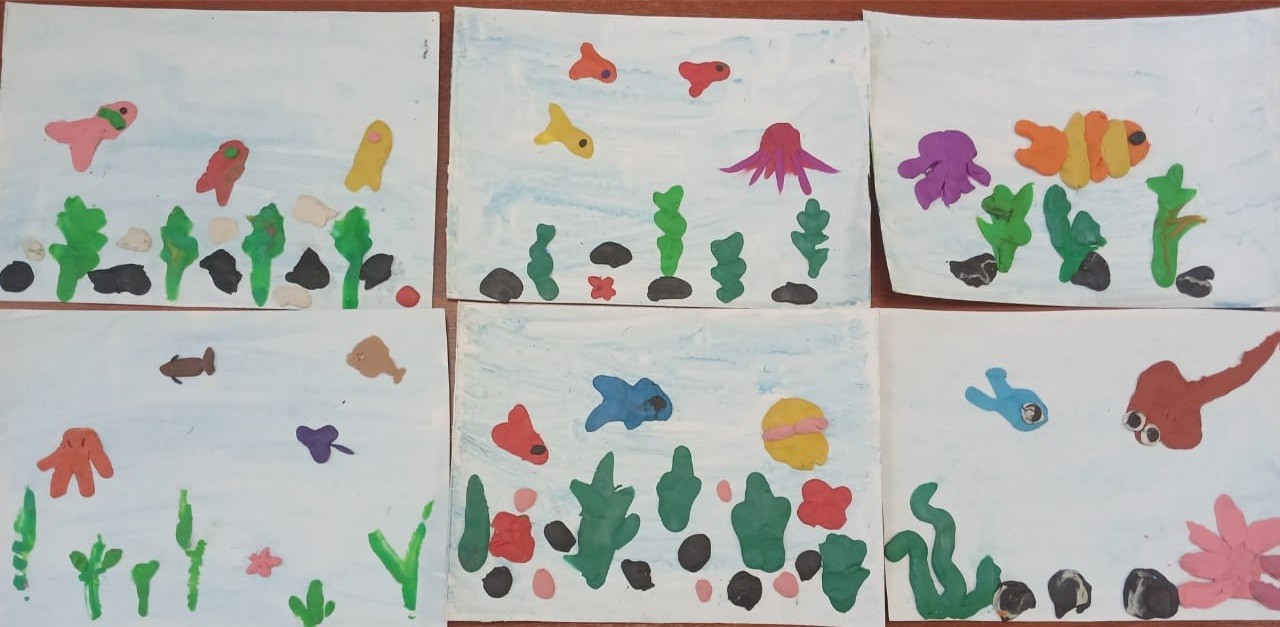 полустационарного отделения г. Киреевска в рамках реализации проекта «Активное долголетие» специалистом по реабилитационной работе было проведено занятие по пластилинографии «Подводное царство».