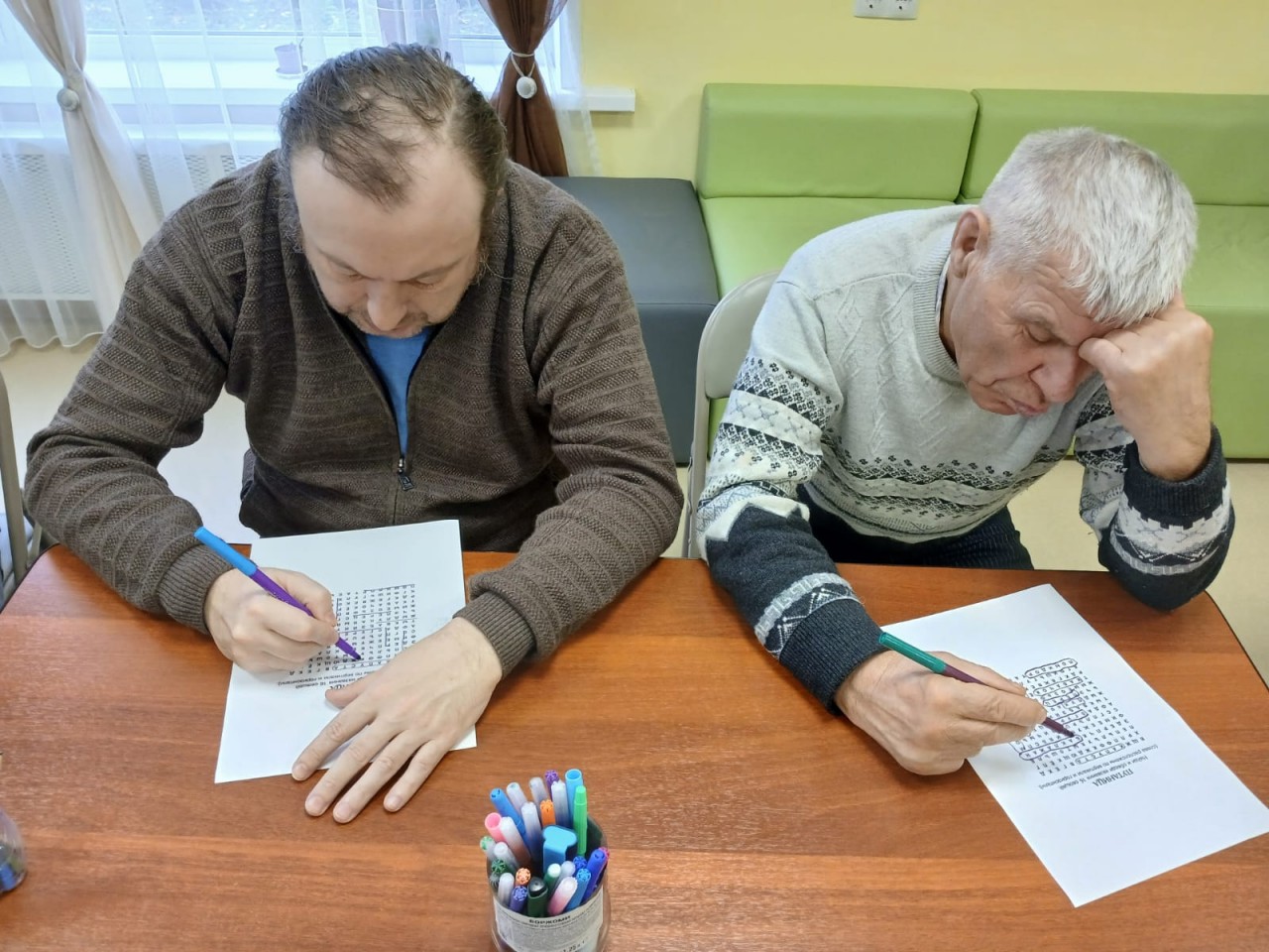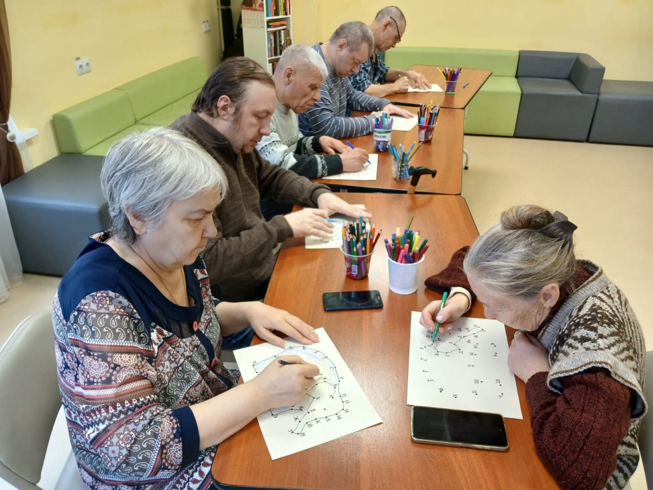 Сегодня наши получатели отлично потрудились, тренируя свою память и внимание! Мы провели интересное занятие, где в игровой форме повторяли алфавит, искали спрятанные слова среди запутанных строк и находили нужные буквы, выделяя их по-особенному. Все прошло в атмосфере радости и позитива, что, конечно же, помогает лучше концентрироваться и запоминать больше информации.