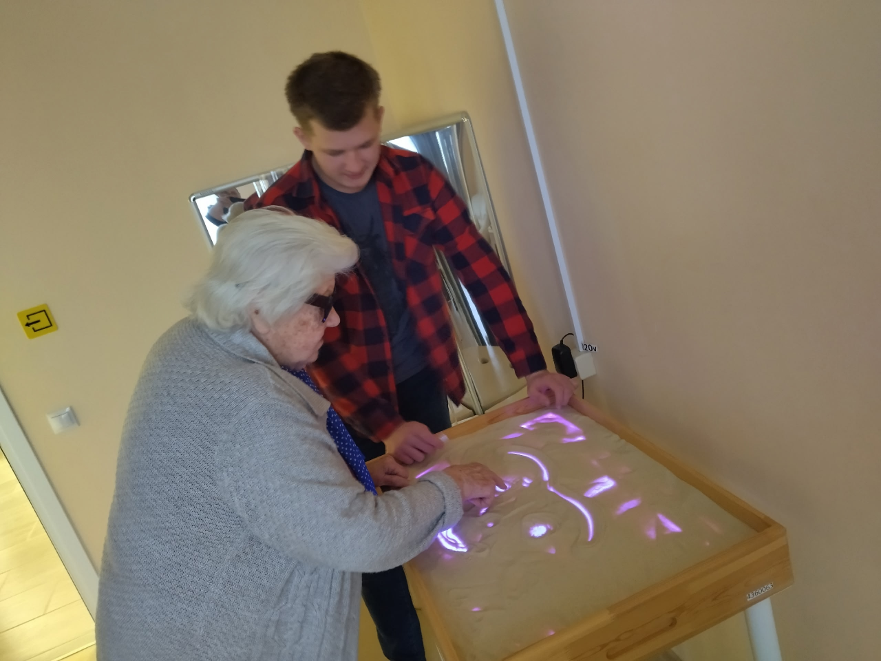 В ходе этого занятия проживающие слушали лекцию о формах внешнего выражения эмоциональных состояний: жестикуляции, мимике и тоне голоса. Затем им предлагалось описать, как человек может проявить ту или иную эмоцию на выбор. Затем проживающим предлагалось изобразить эту эмоцию на интерактивной песочнице с сопровождающим словесным описанием особенностей коммуникативных сигналов.