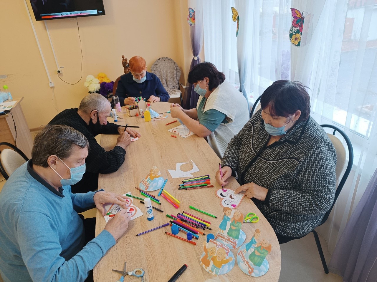 В День бабушек и дедушек наши подопечные принимали участие в творческом занятии. Сегодня в ход пошли ножницы, клей, цветные фломастеры и, конечно же, частички души, вложенные в каждую поделку и открытку.