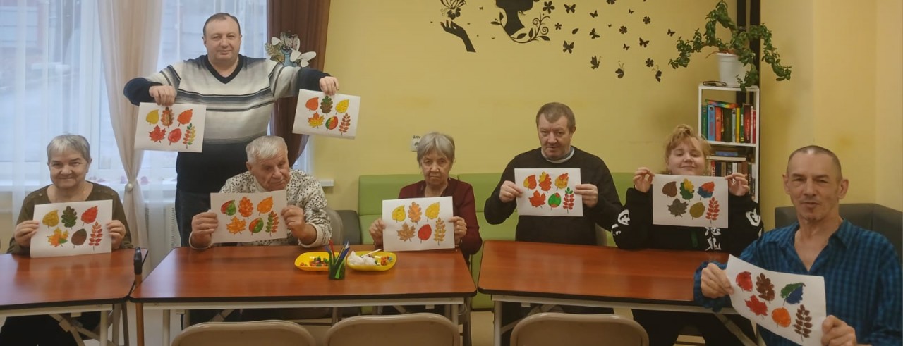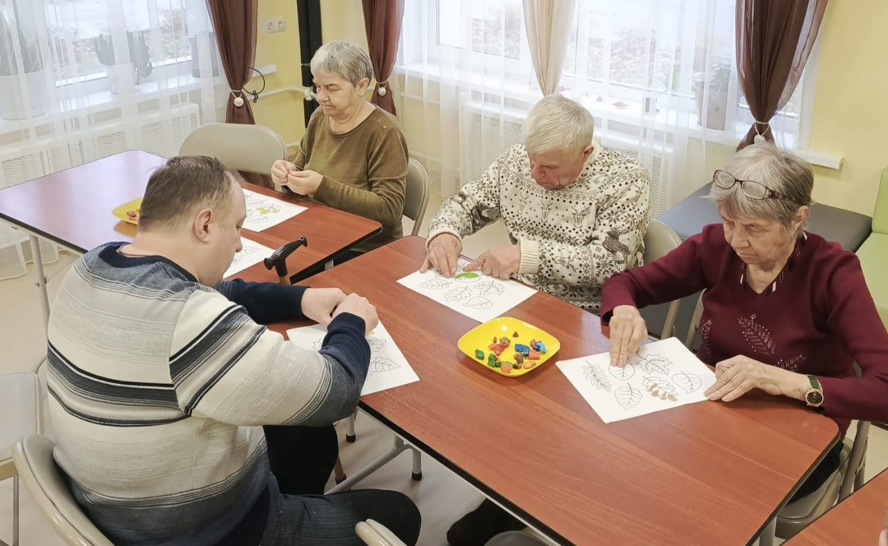 полустационарного отделения г. Киреевска в рамках реализации проекта «Активное долголетие» специалистом по реабилитационной работе было проведено занятие пластилинографией «Осенние листья».