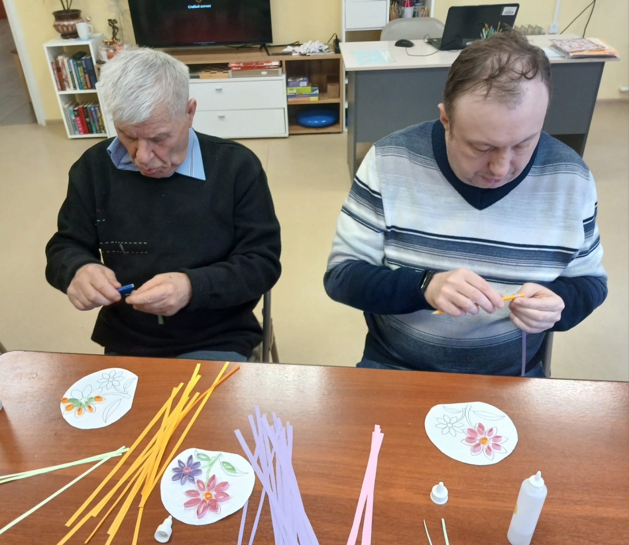 Сегодня наши получатели погрузились в увлекательный мир творчества, осваивая новую для себя технику – Квиллинг.