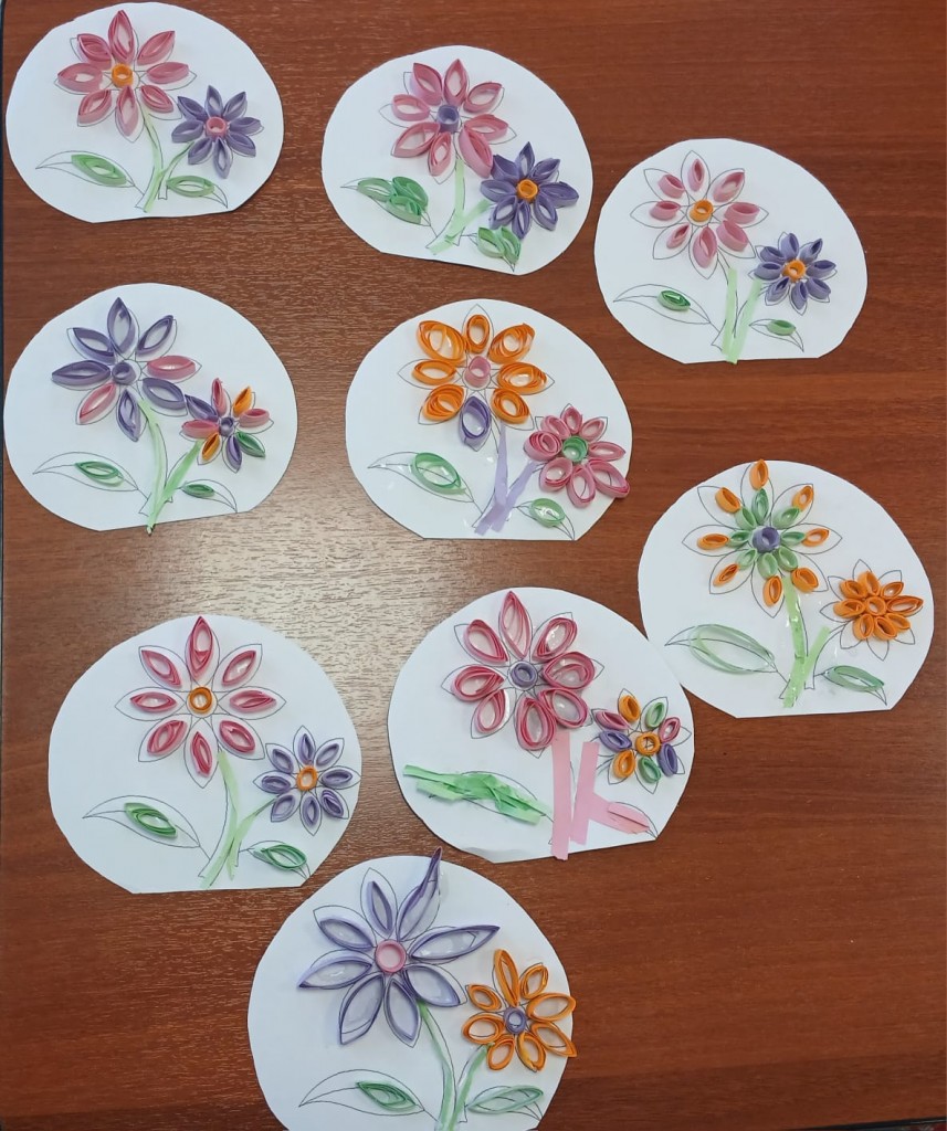 полустационарного отделения г. Киреевска в рамках реализации проекта «Активное долголетие» специалистом по реабилитационной работе было проведено занятие по технике «Квилинг» - «Цветочный ковёр» .