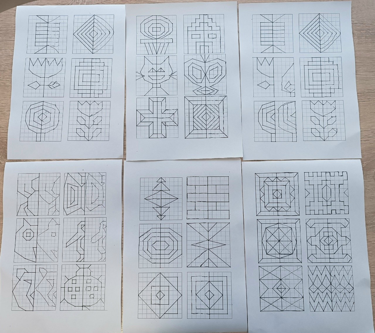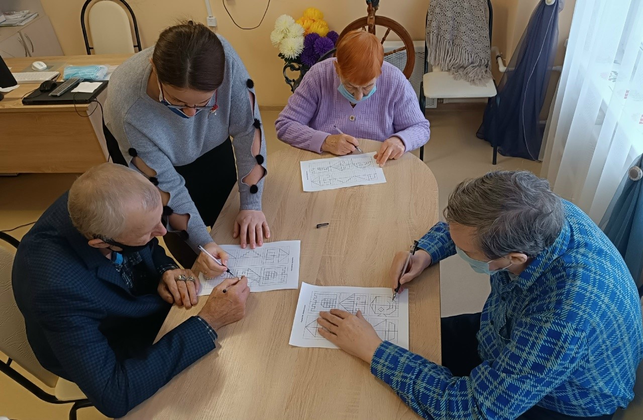 Участники получают лист с начальным фрагментом узора и должны завершить его, добавляя свои элементы или продолжая мотив. Это стимулирует когнитивные процессы и память, а также вызывает радость творчества и самовыражения.