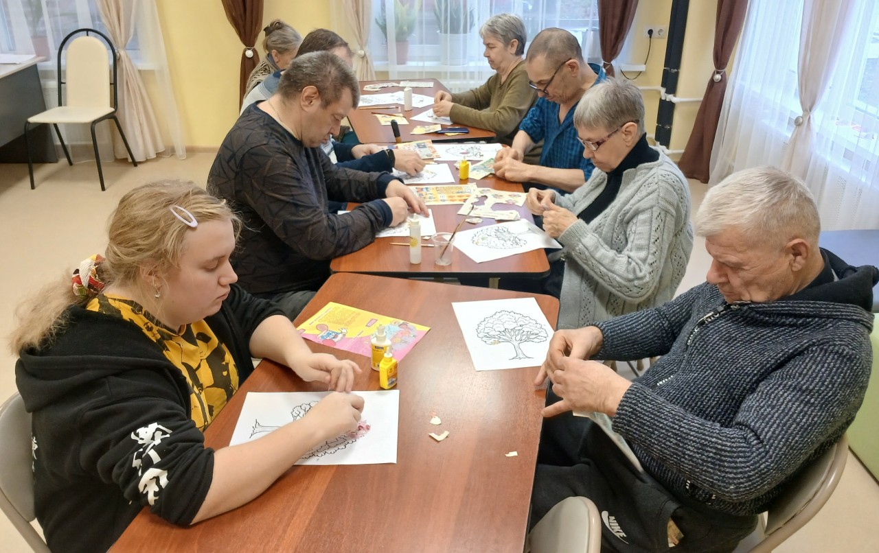 г. Киреевска в рамках реализации проекта «Активное долголетие» специалистом по реабилитационной работе было проведено занятие, посвящённое освоению техники обрывной аппликации.