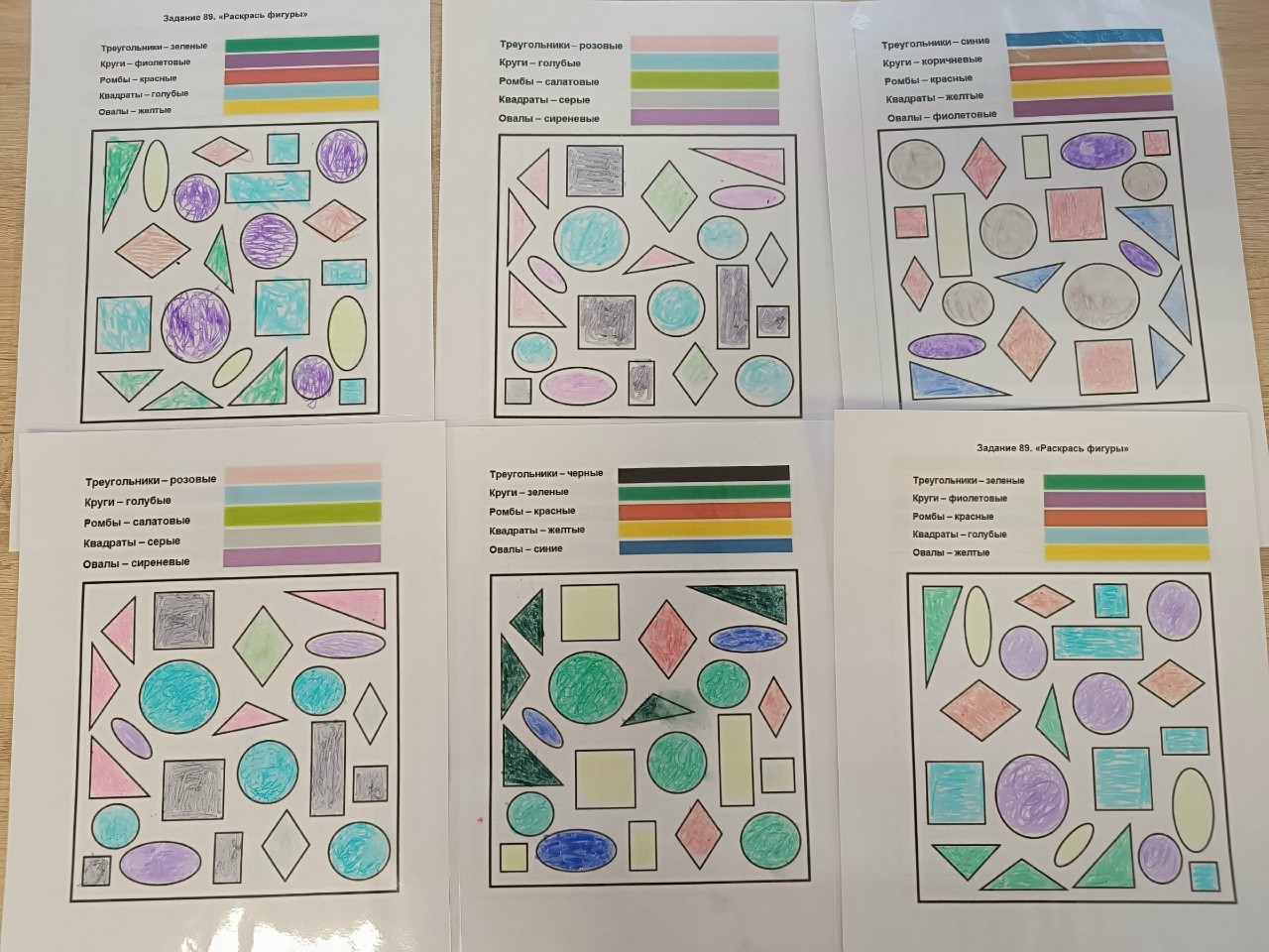 Суть тренинга заключалась в следующем: участникам раздали карточки, на которых изображены различные геометрические фигуры, которые нужно раскрасить в заданный цвет, используя предоставленные цветные фломастеры.