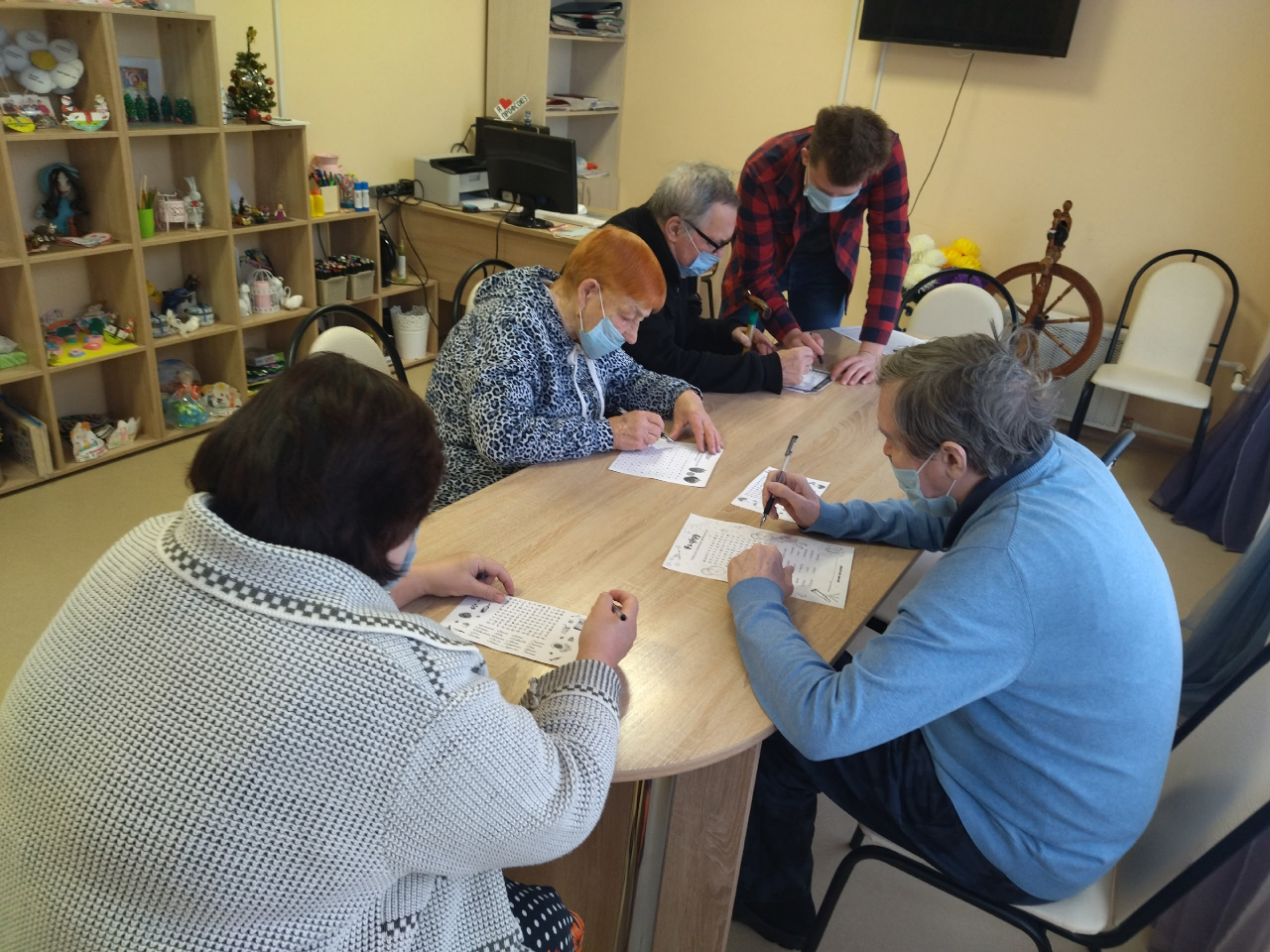 На мероприятии пожилые граждане решали филворды разной сложности, погружаясь в мир буквенных головоломок. Получатели услуг сосредоточенно склонялись над страницами и предавались поиску слов, вспоминая забытые значения и наслаждаясь моментом интеллектуального труда.
