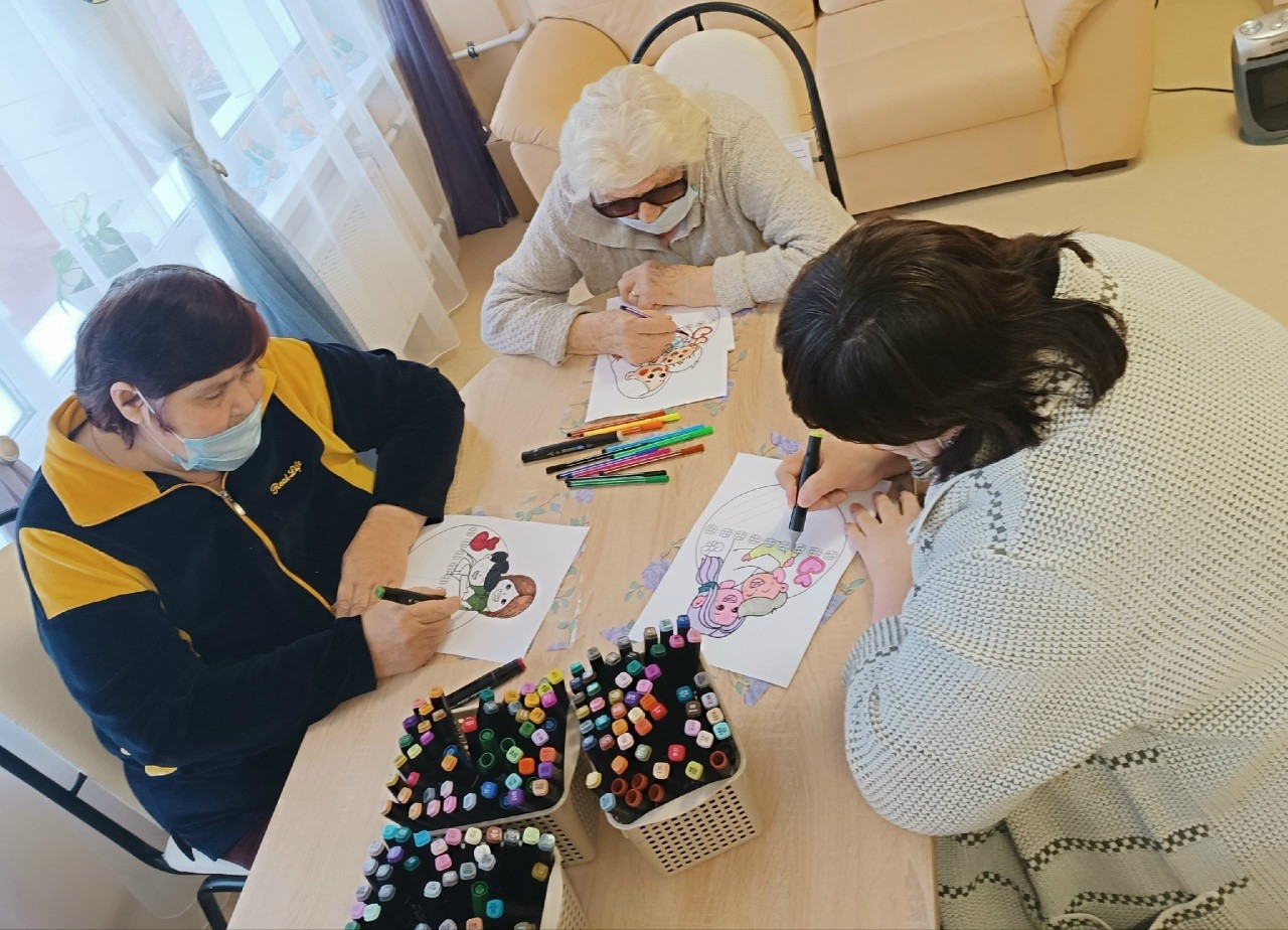 Сегодня, в Международный День детей, участники погрузились в мир творчества, создавая яркие поделки-раскраски, посвященные этому светлому празднику. На лицах участников сияли улыбки, когда они старательно раскрашивали рисунки, вспоминая собственные детские годы, своих детей и внуков. В процессе работы завязывались беседы, звучали истории из жизни, и атмосфера наполнялась теплом и добротой.