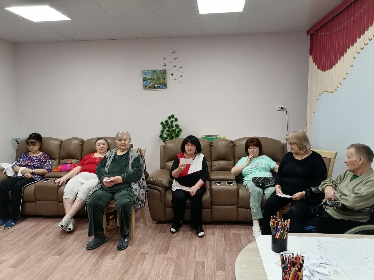 На базе структурного подразделения расположенного по адресу: Тульская область, Киреевский район, урочище "Красный лес" в рамках реализации регионального проекта «Тульское долголетие» психолог провела с получателями услуг познавательную игру-викторину «Осенний калейдоскоп». Каждое поворот калейдоскопа открывал новое задание. Участники игры окунулись в мир осени через осенние загадки, узнали много интересного о грибах, отгадывали осенние рифмы и решали тематический кроссворд. Подопечные с большим энтузиазмом читали стихи, посвященные этой прекрасной поре года, делились своими воспоминаниями, связанными с осенью. Игра проходила в теплой и дружественной атмосфере, что позволило участникам не только получить новые знания об осени, но и сплотиться, почувствовать радость общения и единения. Занятие стало ярким примером того, как можно интересно и доступно развивать познавательные способности и поддерживать активный образ жизни пожилых людей.