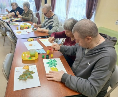 полустационарного отделения г. Киреевска в рамках реализации проекта «Активное долголетие» специалистом по реабилитационной работе было проведено занятие по нетрадиционной технике рисования «Монотопия» - отпечатками листьев на бумаге.
