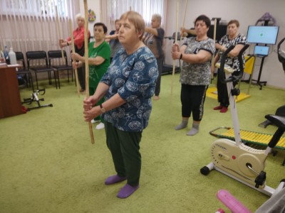 На базе структурного подразделения расположенного по адресу: Тульская область, Киреевский район, урочище "Красный лес" в рамках реализации регионального проекта «Тульское долголетие», с получателями социальных услуг инструктор ЛФК регулярно проводит упражнения с гимнастической палкой. Комплекс улучшает подвижность суставов всего тела, укрепляет мышцы и связки. Улучшает работу сердца, легких и, конечно же, поднимает настроение. Упражнения выполняются в удобном темпе и амплитуде, чтобы подопечные могли чувствовать себя комфортно.